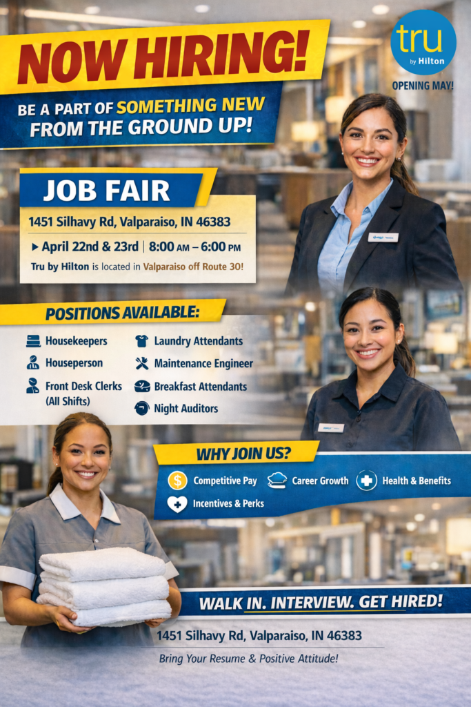 We are now hiring for the new Tru by Hilton in Valparaiso, opening this May.